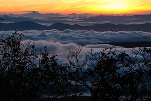 Sunrise during a cloud inversion, as seen from the Allegheny Front region of the Dolly Sods Wilderness Area, West Virginia, creating a breathtaking scene of sunrise through a sea of clouds.